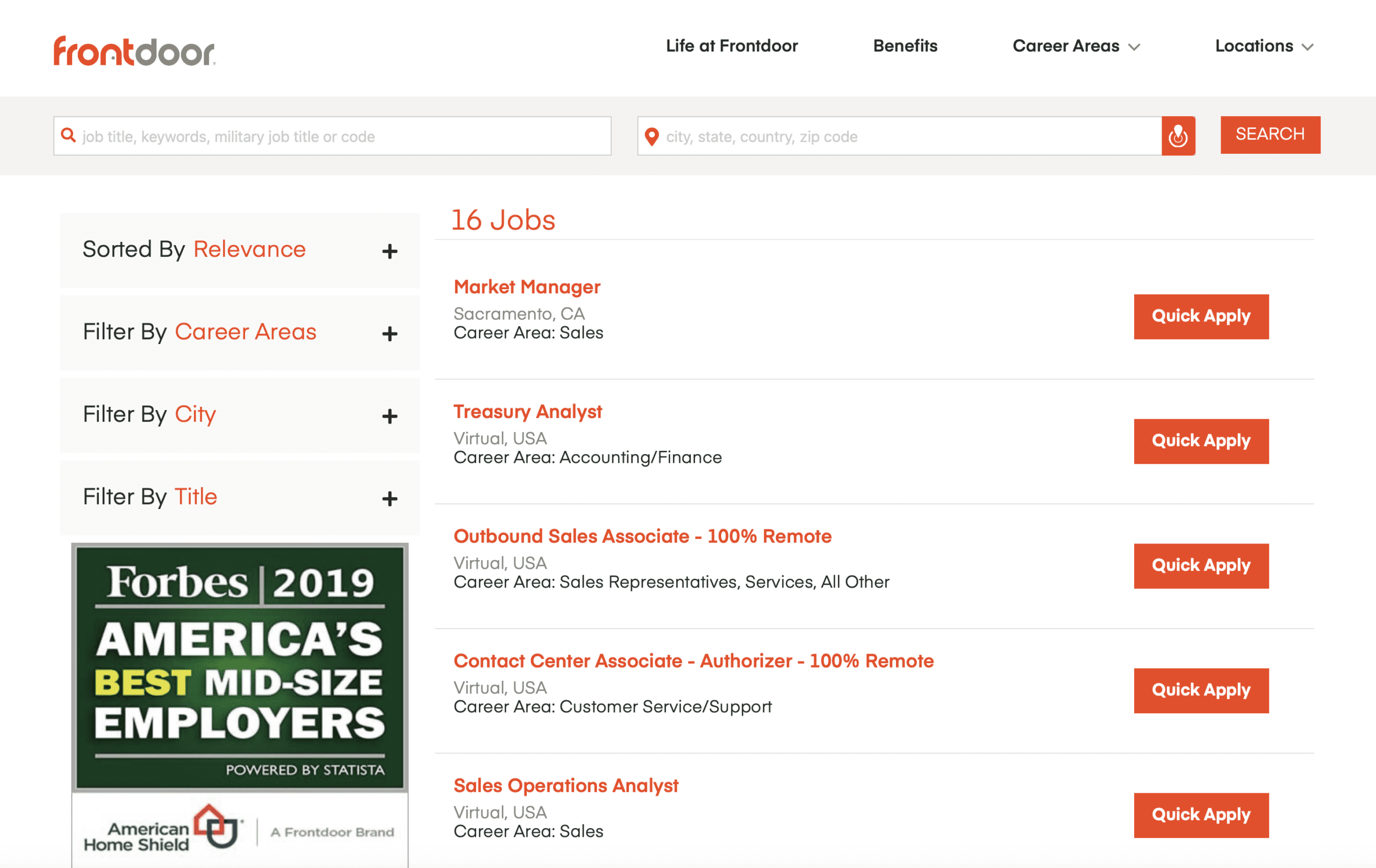 Dedicated pages for career areas, benefits, and locations, giving candidates clear insights into what it’s like to work at Frontdoor and helping them make informed decisions about where to apply.