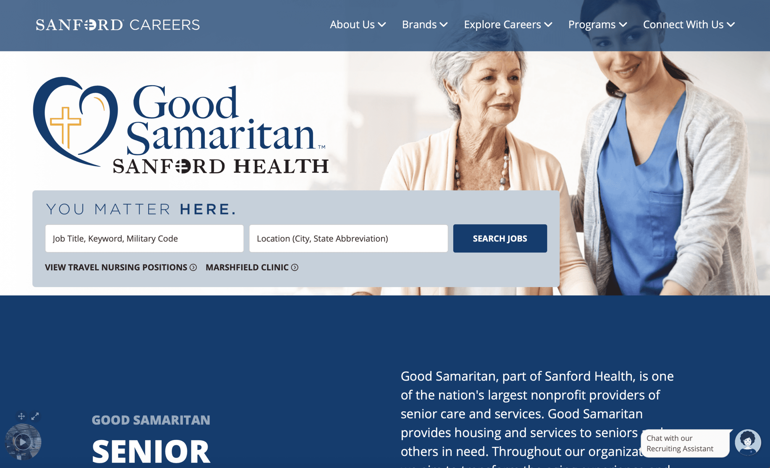 For senior care organizations hiring at national scale, job search isn’t just a feature, it’s the front door to the workforce. When candidates can’t quickly find relevant roles by location, specialty, or brand, critical positions remain open and care delivery is impacted. By implementing an intelligent, AI-powered job search within a seamless multi-brand ecosystem, Good Samaritan ensures candidates can easily discover the right opportunities, whether they’re searching broadly within Sanford Health or specifically for Good Samaritan roles. Smarter search results, accurate location filtering, and brand aware experiences reduce friction and help candidates move confidently from search to application. The result is a hiring experience that respects candidates’ time, supports frontline and clinical recruiting at scale, and helps Good Samaritan continue delivering compassionate care to communities across the country.